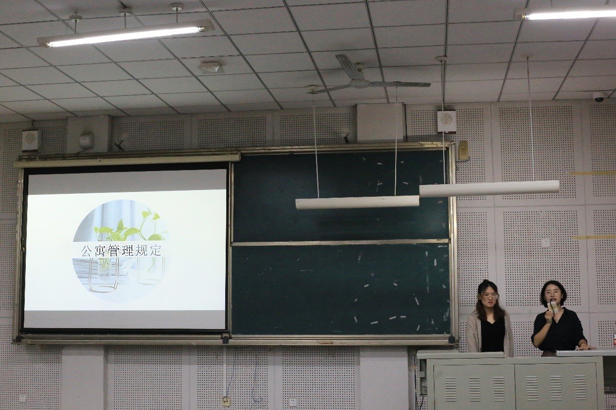 通过案例分析与图片展示,郑老师讲述了公寓常见的安全问题,如物品失窃、传销陷阱、公寓失火、疾病传染等。接着,郑老师希望各位同学“爱舍如家”,团结友爱、爱护卫生,共同建设良好的宿舍文化。最后,院学生会公寓负责人王慜同学,通过个人经历,与新生共同分享了公寓生活中常见的问题和求助措施。