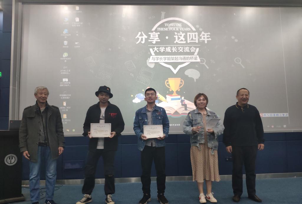 交流会以“分享·这四年”为主题,邀请大四优秀学生代表辛文昊、李泳震、陶晨与低年级同学分享自己在大学期间的学习生活经验,对于考研、就业提出各自独到的见解和具体的建议。辛文昊学长和李泳震学长主要分享他们在校四年对自己的人生规划,告诫大家不要荒废青春时光,及时明确未来发展方向。陶晨学姐则分享自己艰辛的考研之路,就备考过程向大家进行详细介绍,鼓励大家一起努力。在互动提问环节中,在场同学提出了关于专业、考研等方面的困惑,三位学长学姐则根据自己的认识和经验,以幽默轻松的语言逐一进行详细回答。最后,顾群业院长、丁鲁书记为分享嘉宾颁发主讲人证书,交流会在热烈的气氛中落下帷幕。