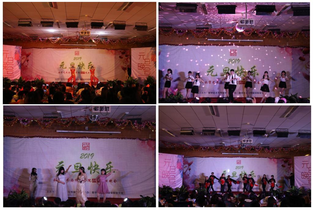 首先,晚会在院学生会主席团和各部门参与拍摄的祝福VCR中拉开帷幕,各部部长带来激动人心的舞蹈。接下来,数字媒体一班带来小品《科学课》,幽默风趣,令人喜爱。影视一班的舞蹈串烧《咋了爸爸联盟》,现代与古代的碰撞,青春与搞笑的结合,洋溢青春的活力。文艺部的相声《恋爱与套路》引来观众阵阵笑声。数字媒体二班的小品《美人鱼》幽默不失感动,给人留下深刻的印象。十佳歌手李晓萱一曲《男孩》,余音绕梁,震惊全场,给观众带来一场完美的听觉盛宴。最为激动人心的当数抽奖环节,随着老师的喊停,三轮不断抽奖带来惊喜和欢呼。影视二班为我们带来的杯子舞《敲开新年大门》,轻快的节奏,统一的动作,看的大家心驰神往。动画一班的荧光《butterfly》借助光与影的碰撞,与舞台背景交相辉映给我们带来视觉享受。戏剧班的舞蹈串烧《寻舞》,动感的节奏,美妙的旋律,劲歌热舞无不展现青春的活力。摄影一班为我们带来搞笑的音乐剧《灰姑娘》,滋润了多少童年的梦想,又引起了多少人对爱和美的渴望。摄影二班的小品《吃面》掀起了晚会的高潮,搞笑的段子、精彩的表演、敬业的精神让大家不禁拍手叫好。手工制造乐队用架子鼓、吉他为我们演奏的一场精彩的表演,如同亲临演唱会现场一样震撼。最后荧光与舞蹈结合,手指舞和hiphop相互融合,同学们伴着欢快的配乐,做出一个又一个惊心动魄的高难度动作。欢乐的时光匆匆流逝,元旦晚会最终在掌声中落下帷幕。