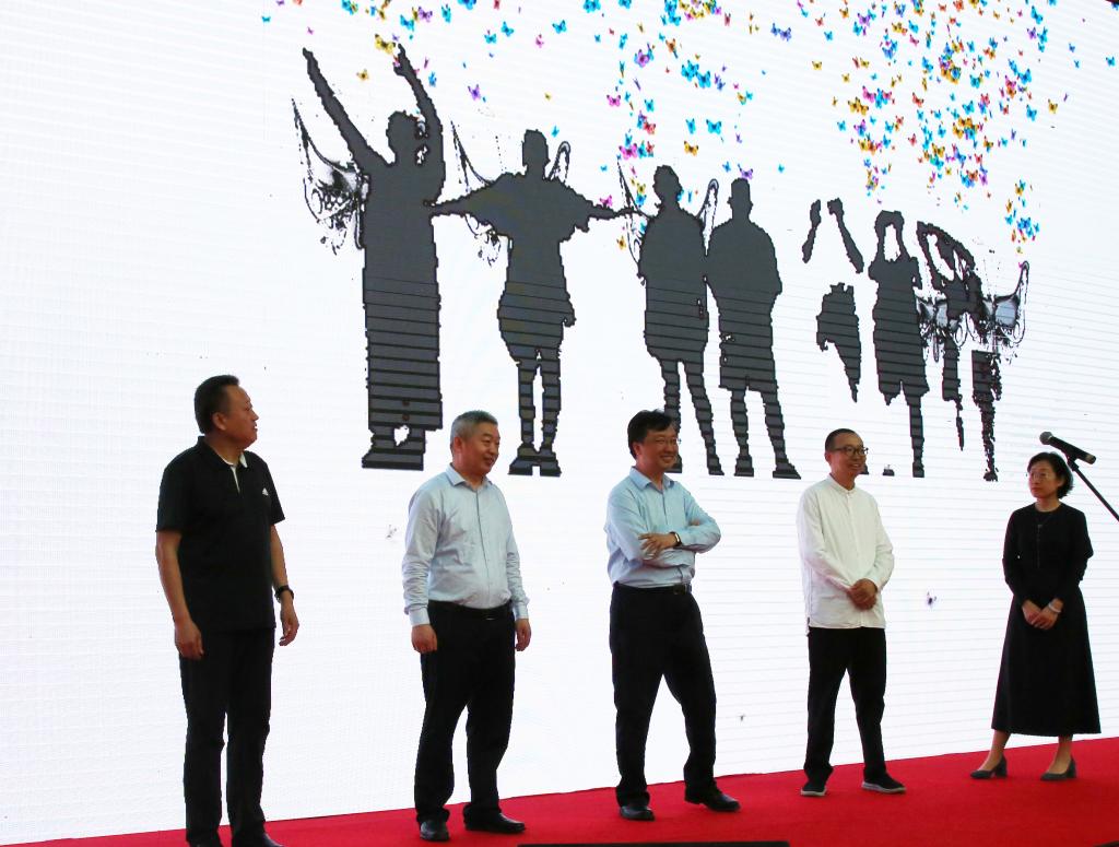 潘鲁生宣布2025新澳门免费原料大全2018设计艺术博览会暨毕业生推介会开幕,开幕作品为我院新媒体艺术专业教师指导毕业生创作的交互作品《蝶&舞》,校领导和出席嘉宾共同参与互动。