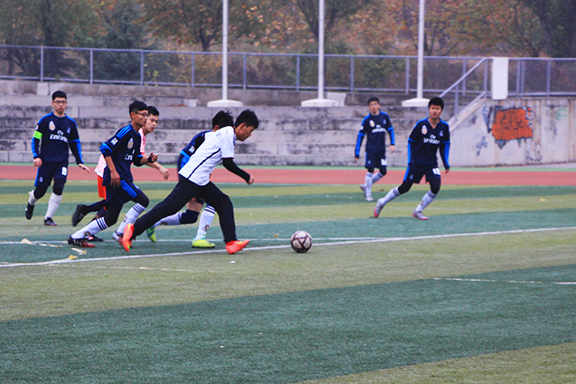 绿茵点亮梦想,激情舞动青春。随着裁判的一声哨响,比赛开始,寒冷的天气阻挡不了大家的热情,双方都使出全力,你攻我守,队员们已经迅速进入状态。上半场的比赛中,我院队员通过积极配合、团结协作,首进一球。足球场上,队员们尽力拼搏,奔跑如离弦之箭,观众的加油声也是振奋人心。当比赛进入到下半场,我院队员提高了防守强度,致使对方极难进入禁区,队员抓住机会,在侧翼发动攻击再次进球,将比分扩大并将领先优势保持到最后。最终,数字艺术与传媒学院以2:0的成绩取得比赛的胜利。