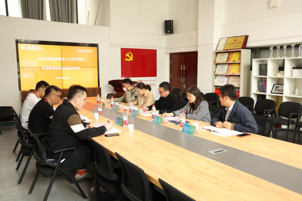 为深入贯彻落实党中央、国务院关于高校毕业生就业工作的决策部署和教育部、省教育厅关于高校“访企拓岗促就业”专项行动的工作要求,借力校园招聘主渠道,搭建供需精准对接平台,全力促进毕业生高质量充分就业,4月10日下午,人文艺术学院于学院会议室开展访企拓岗促就业座谈交流会。党委委员、副院长韩文涛出席活动并与企业进行座谈交流。