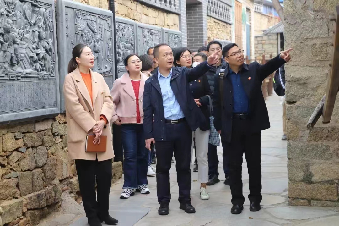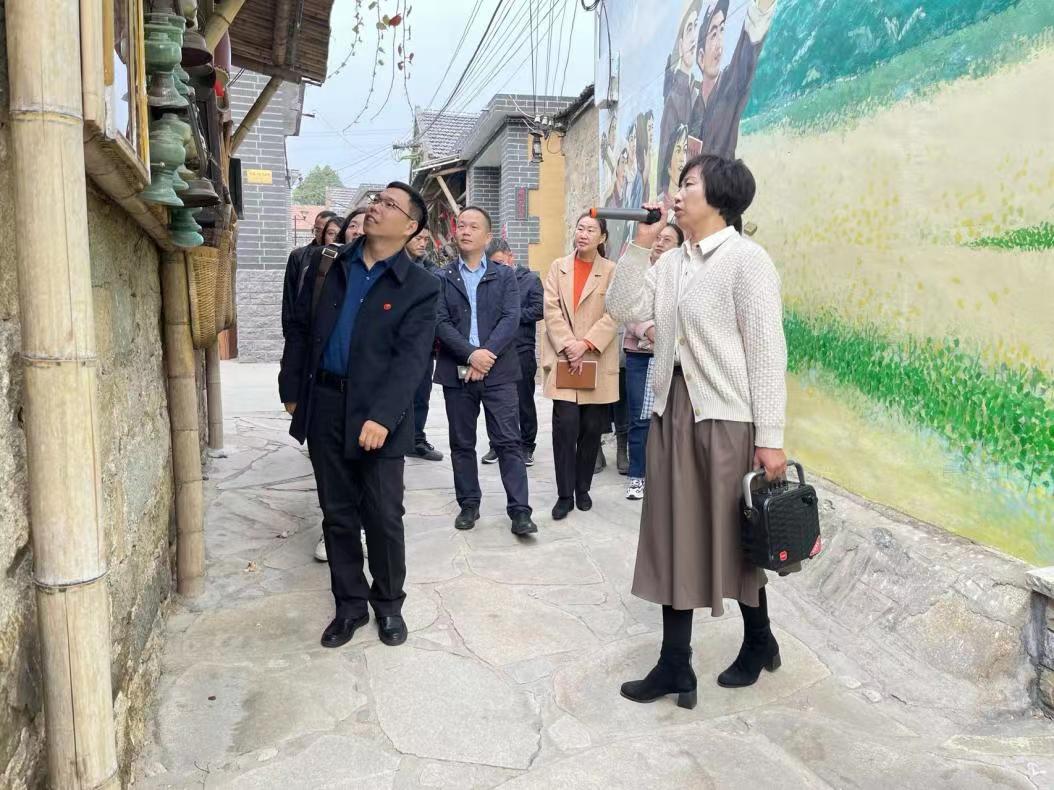 (一)实地调研环节:人文艺术学院党总支及教工二支部党员代表前往马套村进行实地调研,先后参观村内古槐路、村史馆及茶叶生态园,通过村支部党员的现场讲解,支部党员了解到马套村整体规划和党建工作的先进做法,以及目前面临的难题。