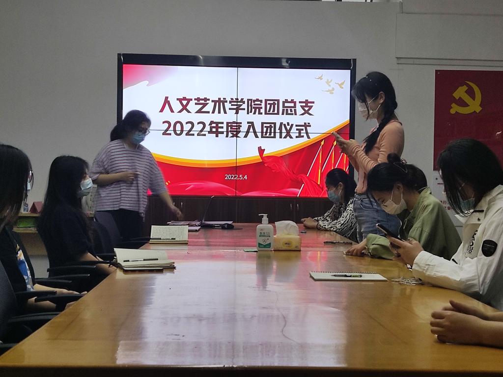为迎接党的二十大,引导和激励广大学生坚定信念、奋发图强,在中国共产主义青年团成立100周年到来之际,5月4日下午,人文艺术学院举办了“牢记青春使命,传承青春力量”新团员入团仪式,团总支书记徐亚辰、辅导员李晶、刘芳华及新团员参与。