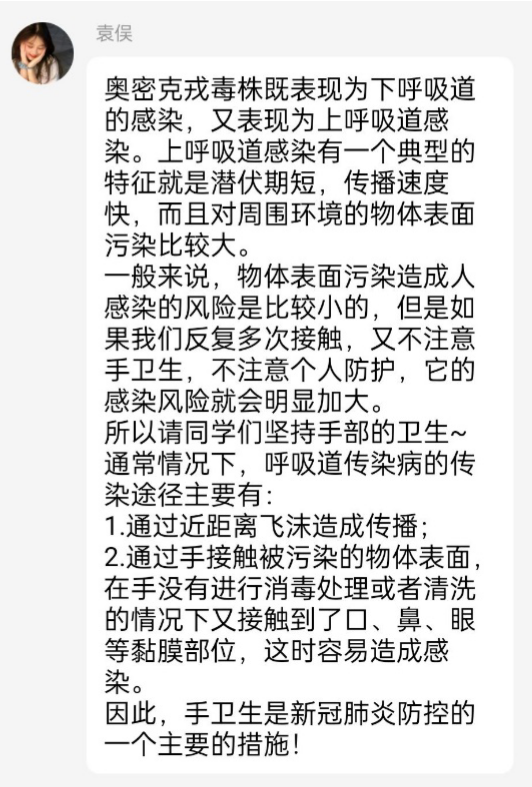 为贯彻落实习近平总书记在京调研指导新冠肺炎疫情防控工作时的重要讲话精神,人文艺术学院团总支线上组织各团支部开展以“青春战疫,你我同行”主题团日活动。