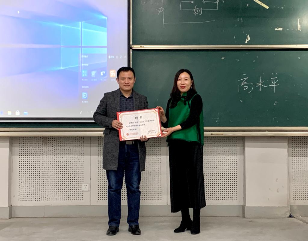 山东福瑞达生物股份有限公司人事部王春阳介绍到山东福瑞达医药集团隶属于鲁商集团,以医药和化妆品为核心产业,是产学研相融合、科工贸为一体的大集团,所属行业涉及药品、医疗器械、保健食品、化妆品等。企业员工的薪资待遇和发展前景是非常可观的,期待同学们前往集团参观、实习。最后,人文艺术学院党总支副书记张晓宁为福瑞达人才资源管理部经理赵辉颁发校外就业导师聘书。