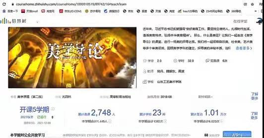 该课程积极响应教育部新文科建设要求,进行线上线下混合式教学模式的改革。教师充分利用线上MOOC 资源、教学 APP、智慧教室等教学平台,实现信息技术与课程内容的整合,通过“学生线上自主探究学习——发现分析问题——教师线下引导解决疑难问题”的混合教学模式激发学生进行自主学习。课程团队于2019年在智慧树建设在线课程,侧重美学理论基础知识的讲解,已经运行五学期。累计选课人次2700多人,选课学校23所,互动1万多。2020年12月在中国大学慕课上线,已经运行三期,累计选课人次3000多。课程组织实施分为课前、课中、课后三个阶段,课前侧重自主学习,课中利用课前线上学习数据进行翻转课堂,课后融汇迁移,依据测验的反馈,教师进一步答疑解惑。