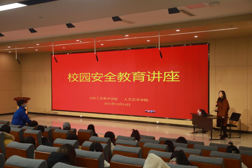为积极响应“无诈学校”建设工作,加强学生的安全教育和管理,提高学生反诈防骗能力、普及反诈知识,增强安全防范意识,2021年12月15日下午,人文艺术学院在长清校区第一阶梯教室举办校园安全教育讲座。本次讲座由长清区大学路派出所副所长崔凯主讲,人文艺术学院党总支副书记张晓宁、团总支书记徐亚辰及辅导员老师参加。