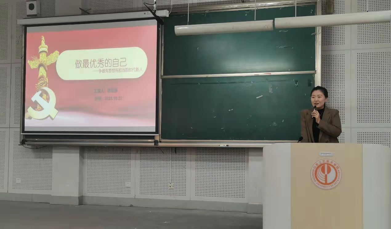 10月27日上午,人文艺术学院团总支开展主题团课活动——“做最优秀的自己”。此次活动由人文艺术学院团总支书记徐亚辰主讲,21级全体新生参加。