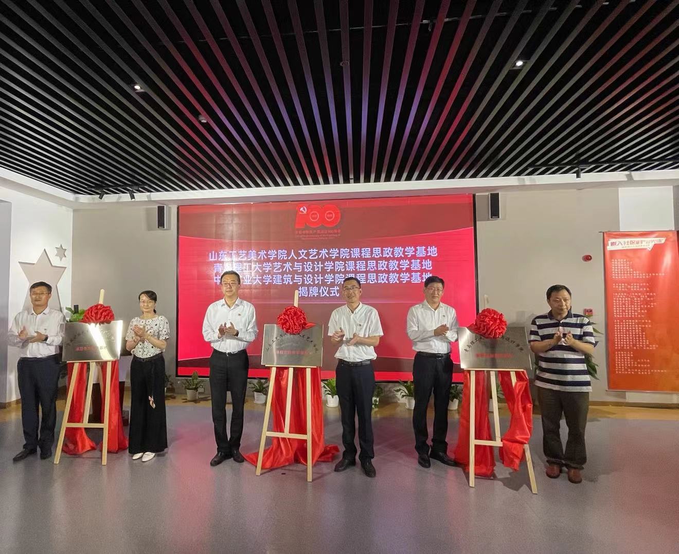 随后,市北区委组织部、党建引领基层治理推进中心、2025新澳门免费原料大全人文艺术学院、青岛理工大学艺术与设计学院、中国矿业大学建筑与设计学院举行课程思政教学基地揭牌仪式。课程思政教学基地是爱国主义教育和红色基因传承的重要阵地,校地双方表示将建立长期友好的合作关系,充分利用基地的优质教学资源,共同为培养德智体美劳全面发展的社会主义接班人贡献力量。这一课程思政教学基地的揭牌设立,为我校增加了一个重要的思想政治教育平台,是我校大力推进思政育人体系建设的一次探索实践。