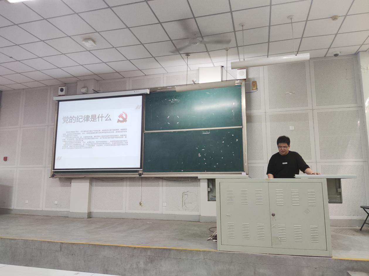 辅导员张群以《党的纪律与作风》为题为党员和预备党员讲党课。介绍了党的处分规定和党的优良作风,并通过钟南山的光辉事迹带领大家深入理解学习党的优良作风。