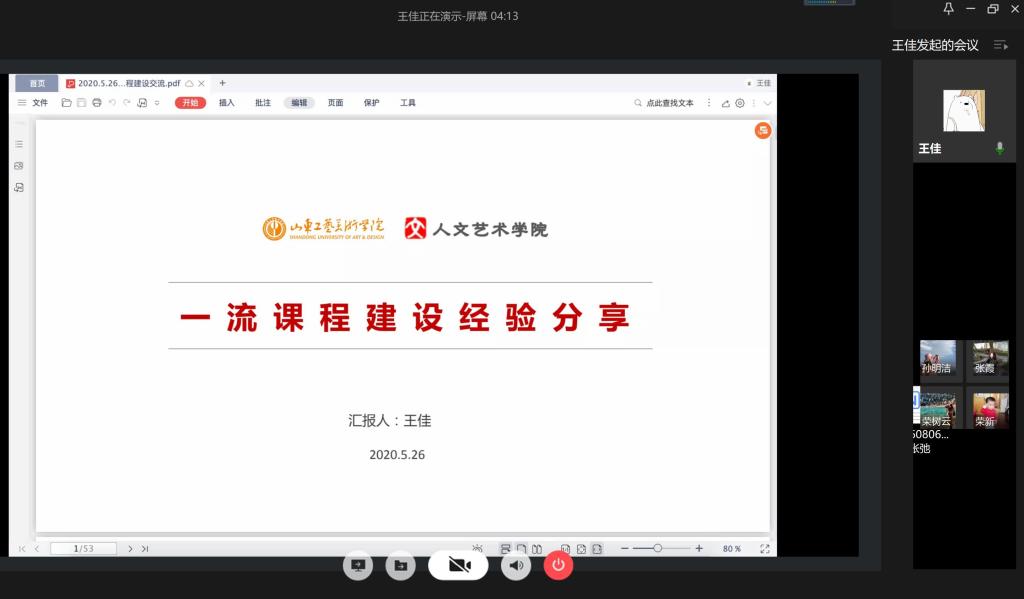 5月26日,人文艺术学院举行了优质课程培育建设经验线上分享交流会。人文艺术学院已参与省级一流课程建设与申报工作的三位老师姚丹、徐小宁、王佳参加了交流会,会议由刘娅萍主持。