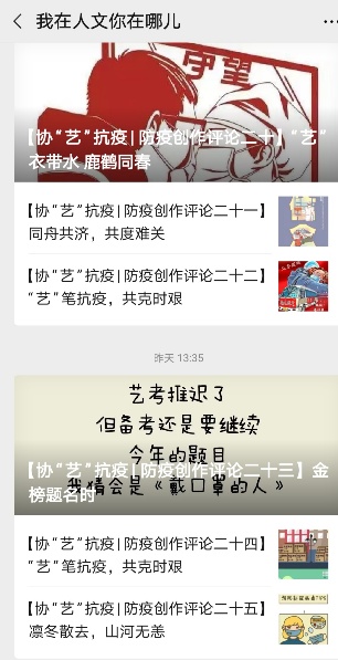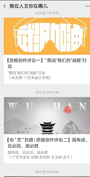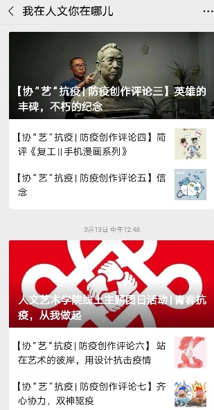 多少人披荆斩棘,是为大众的平安健康,为了祖国变成更美好的模样。一幅幅宣传画,一篇篇评述作品,人文艺术学院学生也会尽己所长所能,为抗击疫情献出一份力量!