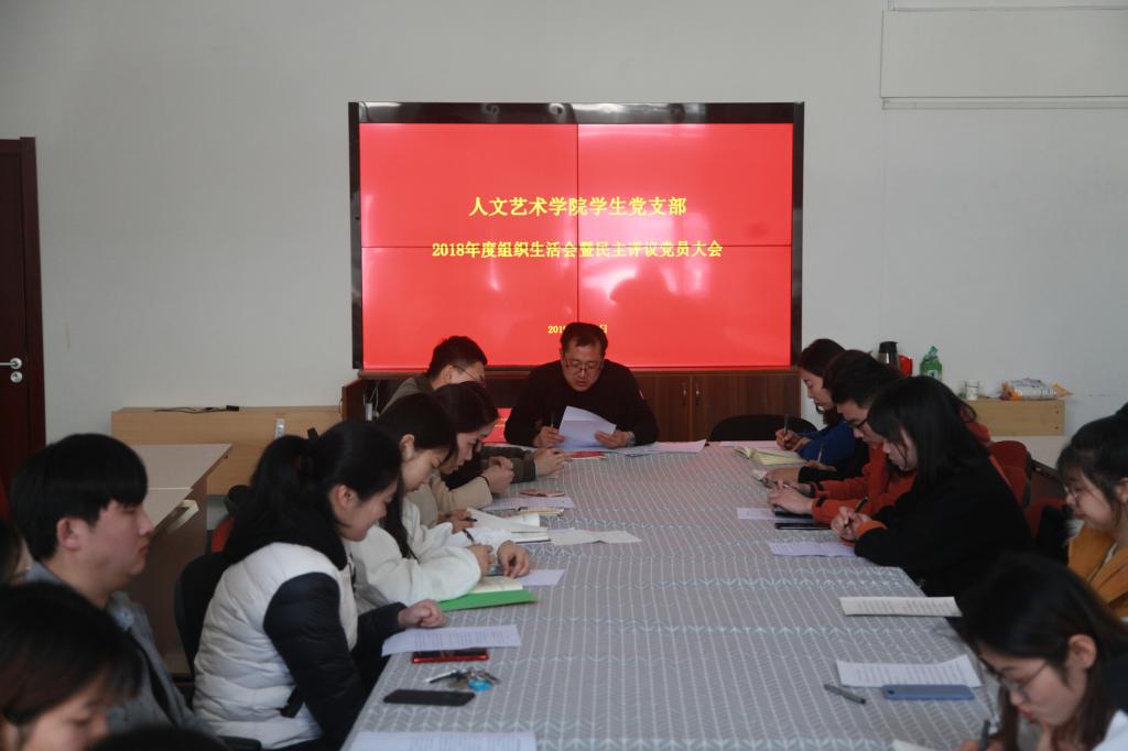 照学校党委统一部署,人文艺术学院学生党支部于3月6日下午在学院多媒体会议室召开了2018年度组织生活会暨民主评议党员大会,党总支副书记张晓宁、辅导员宋嵋和党支部全体党员参加会议,会议由学生党支部书记杨端举主持。
