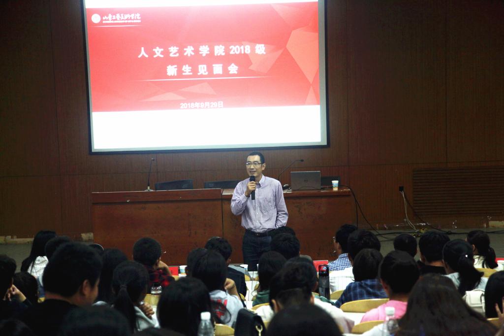 9月29日上午,人文艺术学院在长清校区综合办公楼阶梯一教室举办2018级新生见面会。人文艺术学院副院长徐磊、党总支书记安峰、副书记张晓宁、副院长刘娅萍、教师代表魏毅东、彭鹏、王重远、乔凯、办公室全体成员出席本次见面会。2018级全体新生和代理班主任参加见面会,会议由2018级辅导员宋嵋主持。