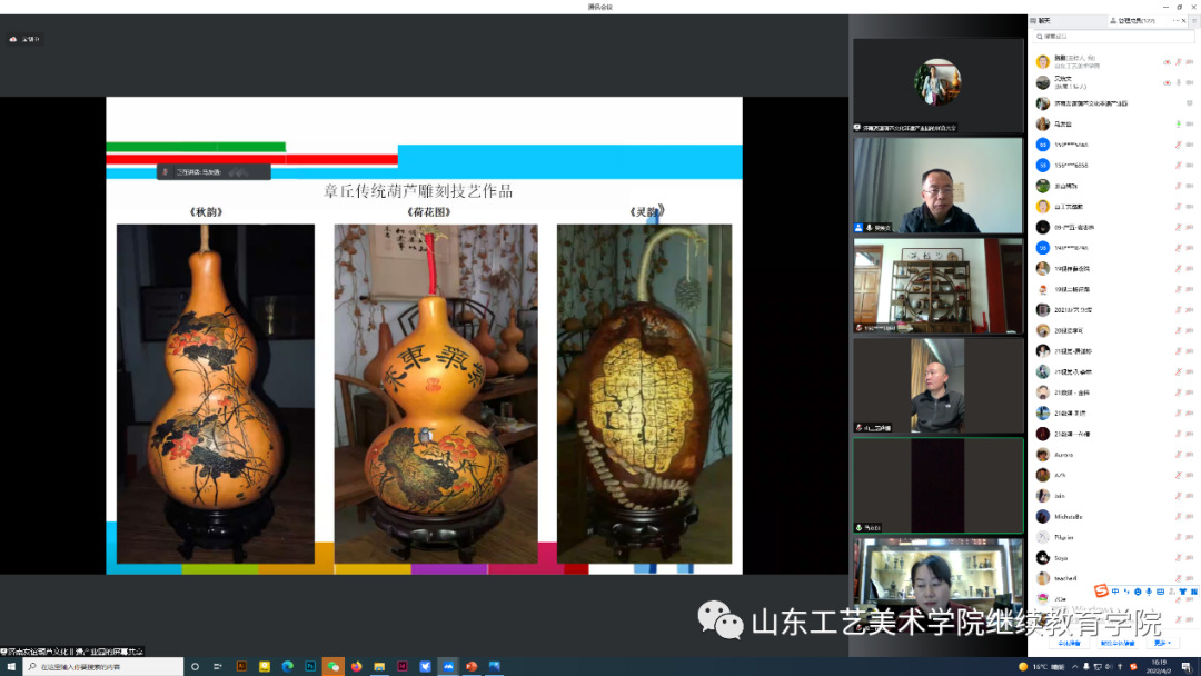 为积极配合学校关于“山东手造”工作的推进,4月2日,继续教育学院以第四届“泰山设计杯”山东手造创新设计大赛为契机,线上组织举办了“非遗传统工艺概述——山东手造竞赛辅导讲座”。