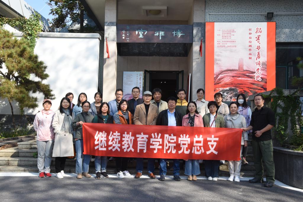 2021年10月12日下午,继续教育学院党总支组织全体教师、党员、附中学生到济南市博物馆参观“翰墨丹青颂党恩”任仲泉绘画作品展。