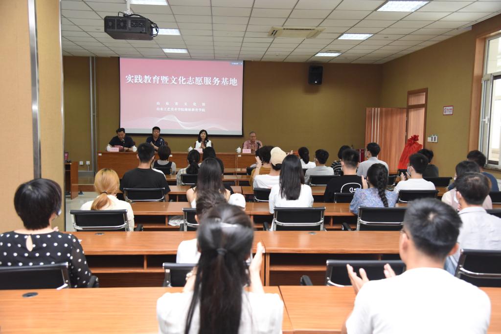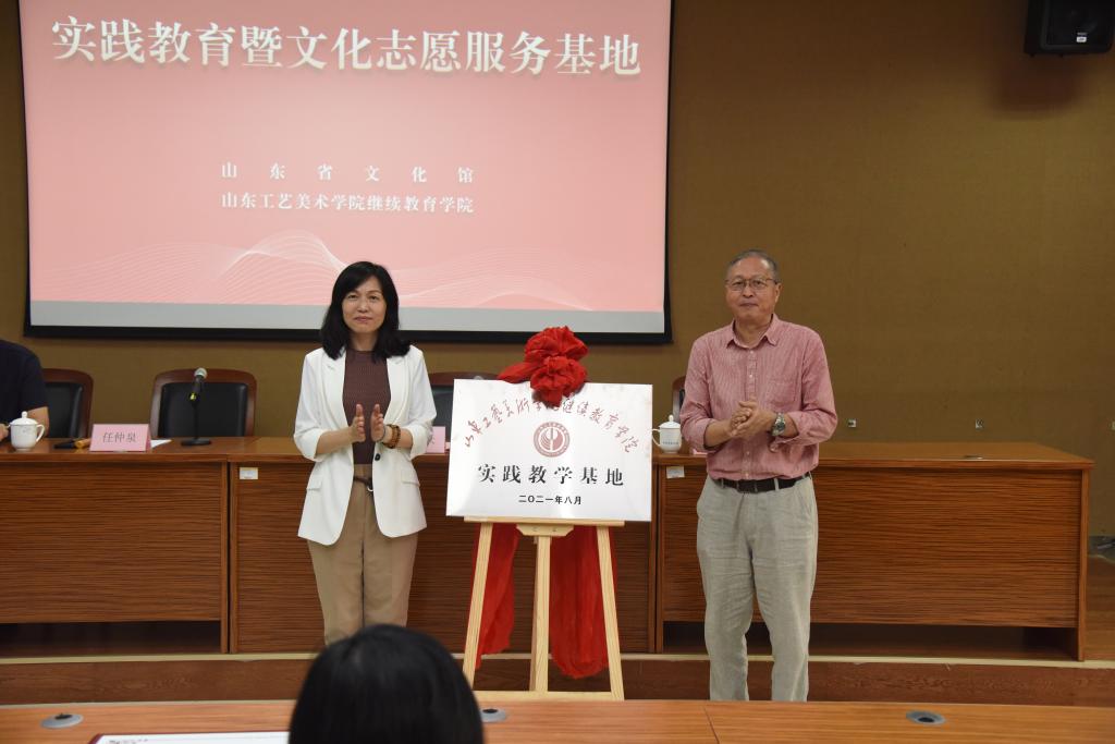 仪式现场,山东省文化馆美术摄影部主任王竞艺主持。山东省文化馆副馆长赵新天、继续教育学院党总支书记任仲全分别发表致辞,对实践基地的成立表示祝贺,并表示以此为基础,进一步深化双方在文化艺术方面的合作。