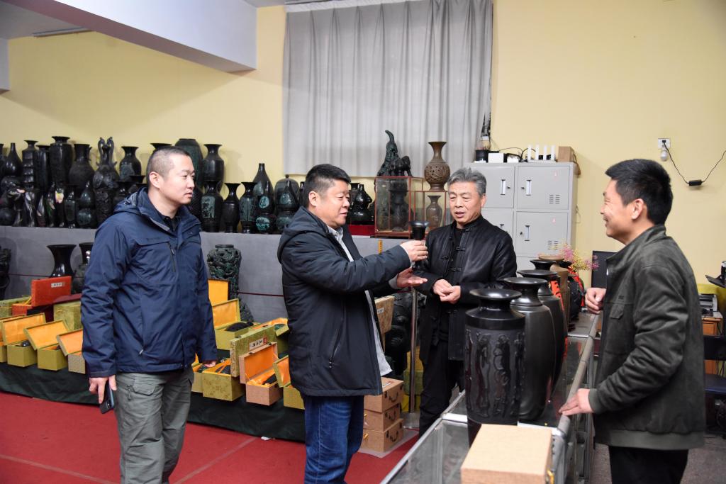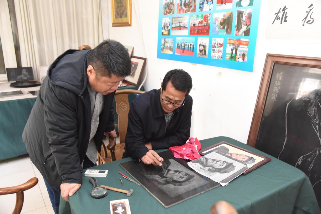 从事石雕技艺的崔为华在产品开发初期得到了当地文旅部门领导的指导和帮助,在继承传统技艺的基础上大胆创新,将汉白玉和墨玉材料进行创新加工,结合红色文化进行产品创意,生产出的产品得到了社会的广泛认可,收入的增多使得他更有信心和底气从事传统技艺的传承创新工作。在扩大生产规模的过程中,通过免费向社会学员及对残疾群体的培训,实现了“非遗+扶贫”的传承模式。谈到现在的产品创新时,崔为华认为在学院培训结束后,更多新想法在他的脑海中形成,比如将诗词等书法内容引入画面,丰富了产品层次和审美意境。崔为华希望学院能够创造更多的机会让传统艺人能够进入高校课堂,在校时与在校学生的交流过程给他留下了很深刻的印象和触动,在设计创新上引发了新的思考。