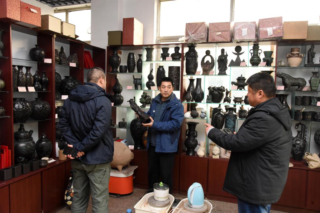 三位从事黑陶技艺工作的学员也都能够根据自身情况将产品以市场为导向进行开发,产品的营销以各展会市集和企业等团体性客户为主,个性化定制也是产品营销的一个重要方式。