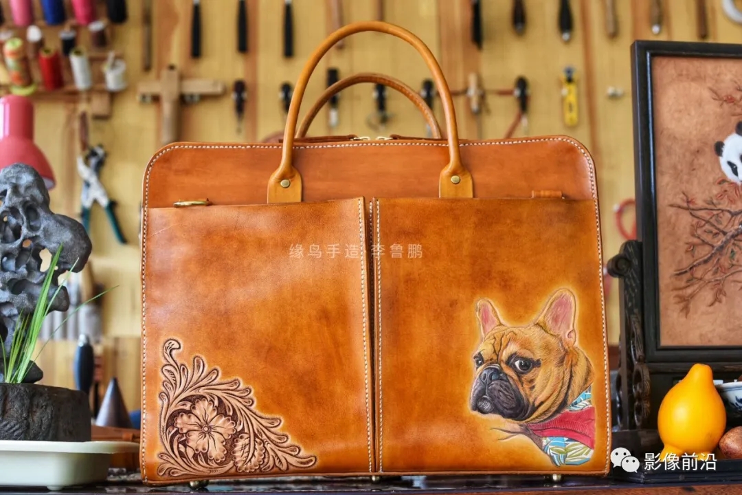 李鲁鹏目前为麻姑岛手工皮雕、皮塑技艺县级传承人。他在海阳市有一家工作室——“缘鸟手造”工作室。主要项目有私人定制皮雕产品,主要题材如宠物;设计开发一些大众喜欢的款式进行统一雕刻染色,再集中组装加工,制作小批量化产品。另外,还依托县级非遗瓦罐窑制作技艺,在其原来以粗陶生活器皿为主的基础上加以创新改进,顺应目前消费需求,制作茶器和工艺摆件。秉承传统技艺,采用原矿岩泥(当地富含铁离子的岩泥,可软化水质),制作的茶器健康环保。