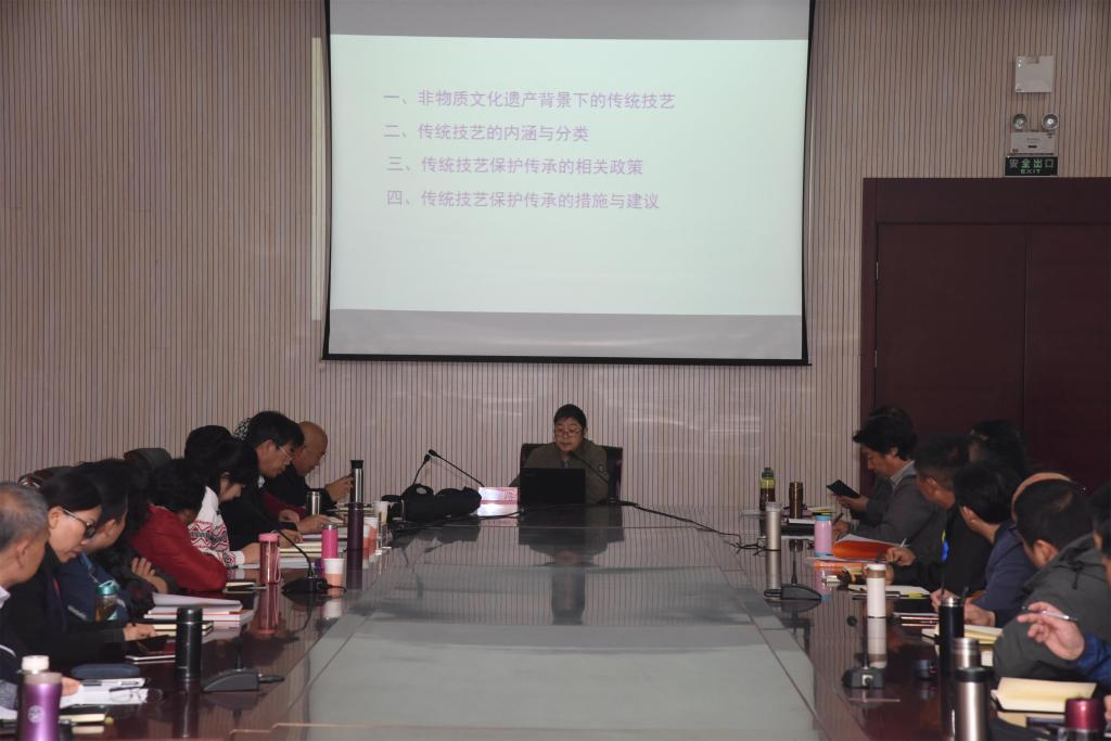 随后由唐家路教授为跨省研培班上了第一堂课——《传统技艺的保护与传承》;下午,太原工艺美术专项培训班学员专程赴我校长清校区到民艺博物馆、全国美展艺术设计展区和实践教学中心参观考察 。