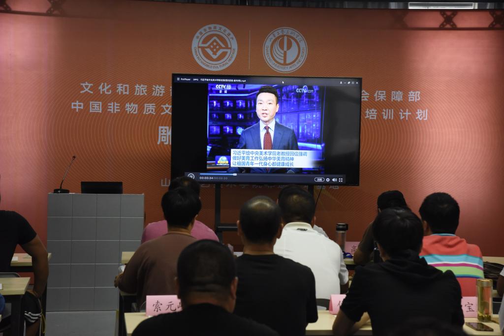 9月12日,继续教育学院团总支组织在校学习的“文化和旅游部、教育部、人力资源和社会保障部非遗研培班”的学员们集中学习了习近平总书记给中央美术学院8位老教授的回信精神。