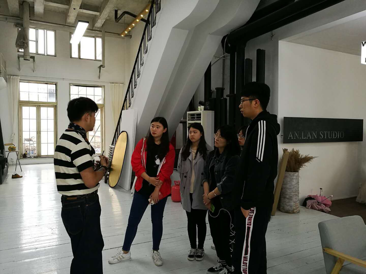 LAN·STUDIO摄影工作室的工作人员首先为同学们讲述了工作室的创办经历、文化建设、工作室的基本设计风格和理念。随后带领同学们参观了工作室和摄影棚,参观过程中工作人员根据不同的拍摄场景向同学们提出了一些学习建议和拍摄方面的注意事项。