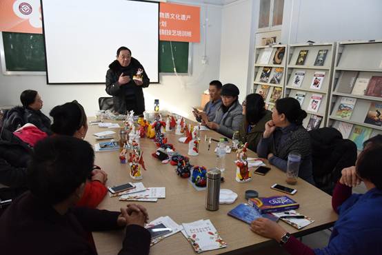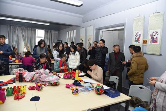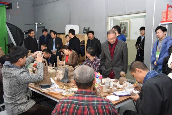 11月30日上午,参加山东省振兴传统工艺经验交流会的成员一行八十余人在山东省文化厅非遗处副处长王尚、蒋士秋的带领下来到我校非遗研培基地参观考察。