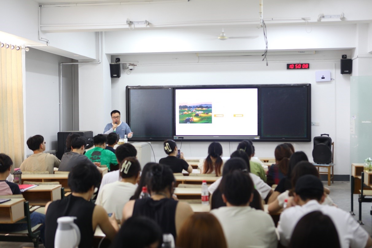 崔鹏佳经理为在场学生详细介绍了愉悦户外产品种类以及本次合作课程的六大选题方向,包括无印良品风、主体化营地产品、自有品牌高端营地产品、以及一体式集成化产品等,为学生们提供了多元且充满挑战的设计机会。课程中,崔经理不仅传授了宝贵的行业知识,还积极与学生互动,耐心解答了学生们的问题,充分激发了他们的创造力和设计热情,将有助于他们更好地应对未来的设计任务。