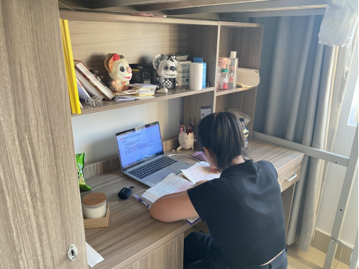 学生在宿舍认真自习