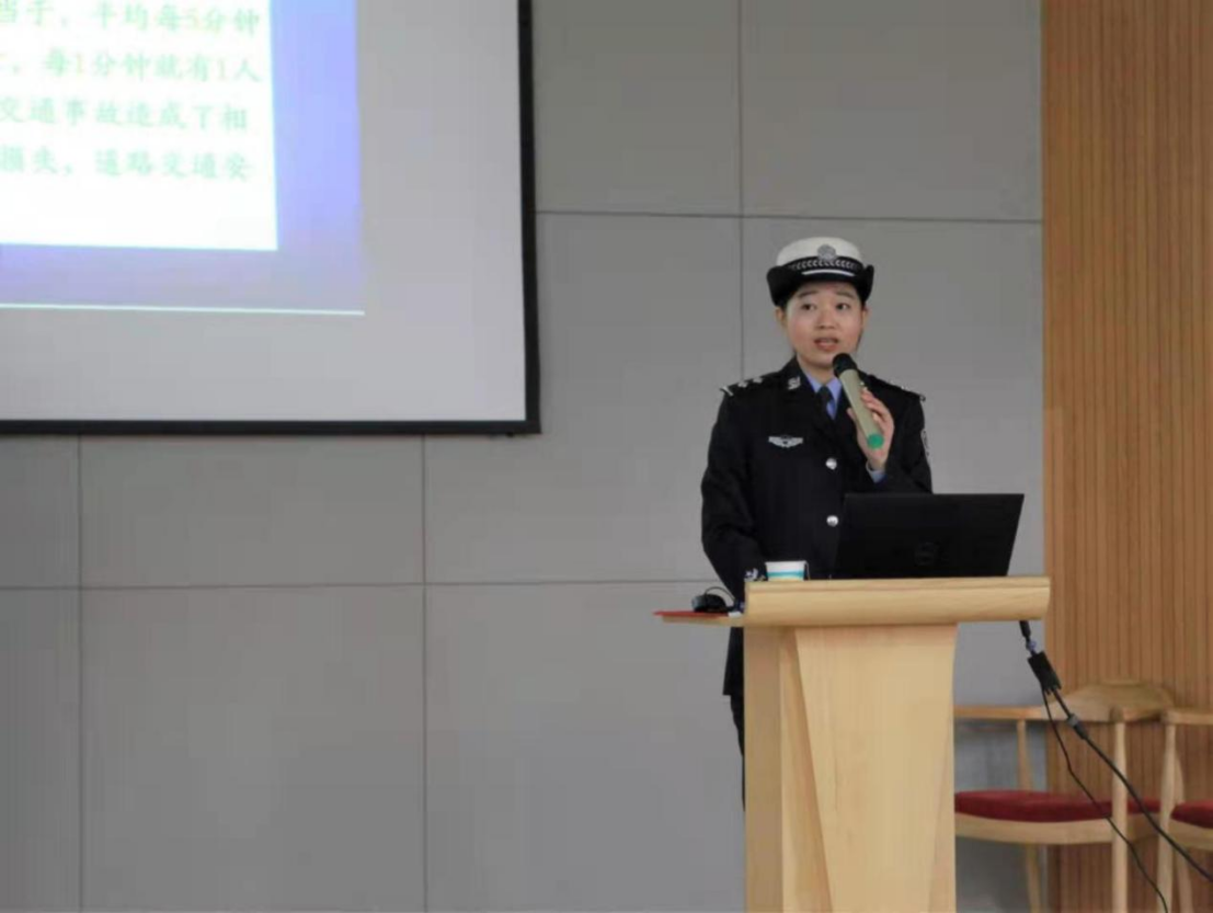 为进一步提高大学生交通安全意识,更好地普及交通安全法律知识,增强大学生知法、守法、懂法的自觉性,营造“守法规知礼让 安全文明出行”的良好氛围,应用设计学院于2021年12月15日于一楼阶梯举行“知危险会避险、安全文明出行”主题教育主题讲座。本次讲座邀请了济南市公安局交通警察支队历下区大队文化路中队黄明珠警官主讲。