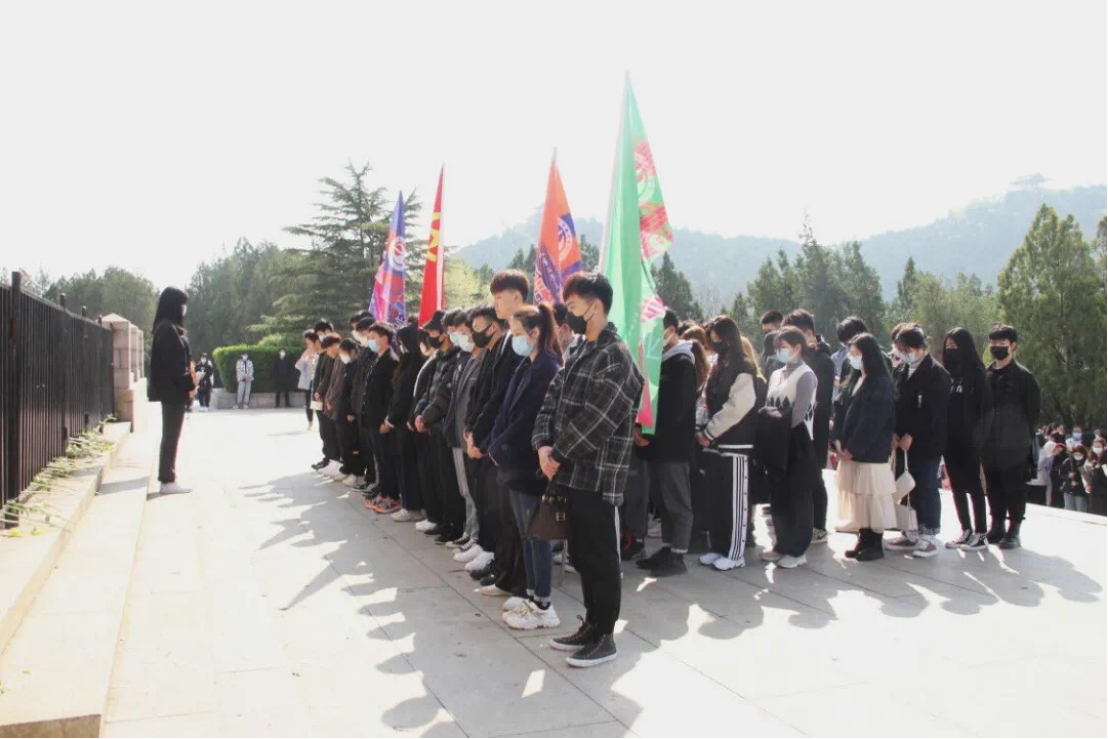 烈士陵园庄严肃穆,草木葱茏。学生代表向人民英雄烈士敬献鲜花,一朵朵的绚烂盛开的鲜花象征着革命烈士英勇无惧的抗争精神和自强不息的民族精神。同时,学生会代表发表致辞,向英雄人民致以最崇高敬意。