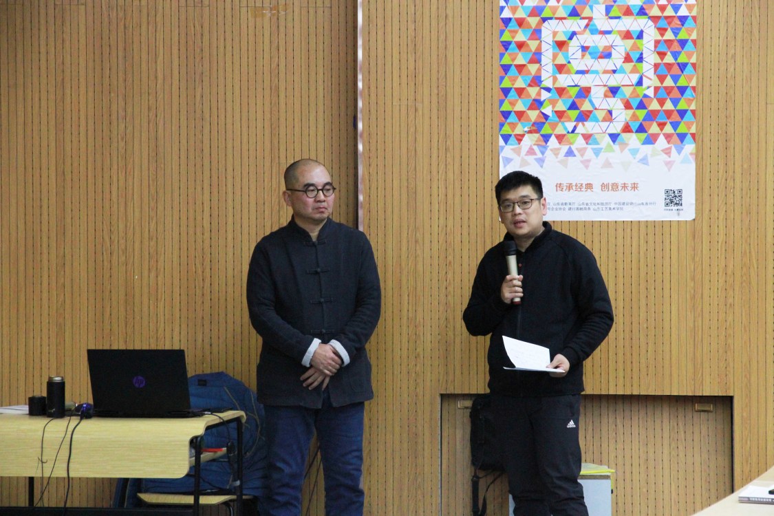 副院长薛坤首先对姜波教授的到来表示欢迎并对嘉宾进行了介绍。而后姜波教授以建造技艺非物质文化遗产传承为切入点,声情并茂地讲述了传统民居对于一座城市的重要性。而后他向大家讲述了传统民居和村落的历史、文化、科学、艺术、经济、社会价值。同时姜教授用幻灯片播放了大量南北方传统民居的图文资料,对比南北方传统民居分析山东各个地区传统民居的内涵与韵味。姜教授认为民居文化是传统文化的重要组成部分,对乡村可持续发展意义重大。