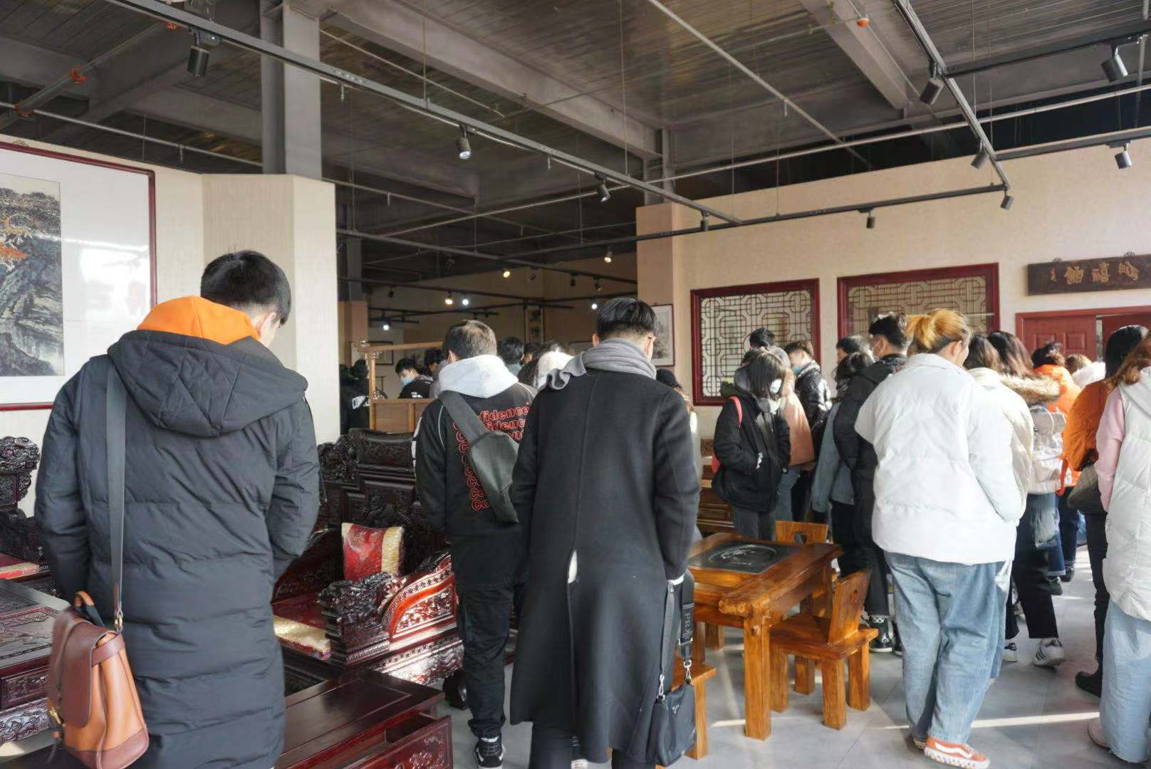 首先,师生在松林镇人大主席常玉平主任的带领下观摩产业园区企业的优秀产品展厅,深入了解实木家具产品的设计、生产和销售情况。随后,师生选择传统家具产销企业进行工艺实践,针对传统的老榆木家具进行测绘和结构剖析。同学们运用课堂上学习到的理论知识,剖析传统木作家具的榫卯结构,认真测量老家具的每一个构件尺度,描绘出标准的家具制图。在企业生产技术人员的引导下,认识原材料的属性,了解木制品加工设备的操作和原理,获得了许多木作工艺实践经验和知识。23日下午,常玉平主任组织多家产业园区龙头企业的负责人与学生进行交流和座谈。会上学生们展示了自己设计的家具图纸,各家具企业负责人对方案给予了较高的评价,并从设计创新、生产工艺、消费趋势、市场前景等方面提出了修改意见。