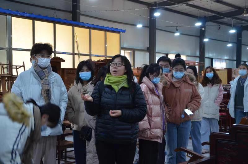 2020年11月23日,按照家具设计专业人才培养方案实施的要求,应用设计学院家具设计专业组织师生赴临清市松林镇进行实训教学。本次实训课程由家具教研室黄永健老师和陈静老师主持,授课班级包括应用设计学院2018级家具本科班46人、专科班11人,及研究生3人。实训过程在我院实习基地——聊城临清市松林镇古典家具产业园区进行。近年来,松林镇组织从事实木家具制造和销售的百家企业形成家具产业集群,从业人员达2万余人,被山东省家具协会授予“山东省老榆木家具产业基地”称号。此次实训课程的目的是考察传统家具样式和结构,包括测量绘图、结构分析、工艺调研、市场调研等,并安排学生采访家具产销企业和方案汇报。