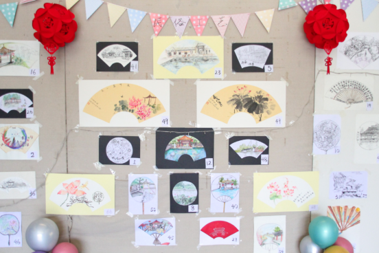 2019级新生们积极参与社团活动,并为自己喜欢的DIY纸扇投上至关重要的一票。这里有序摆放同学们根据自己丰富的想法亲手绘制的扇子。通过评选优秀扇子活动,为同学们展现自己的才艺提供了一个良好的平台,展现出了2019级新生高超的手绘技能与动手能力,并且体现了19级学生们对校园生活的热爱。