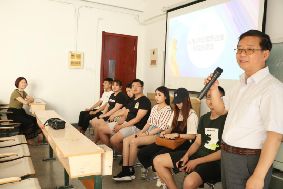 交流会开始,由应用设计学院党总支书记来罗军讲话。来书记用生动的成长经历和风趣的语言,分享了自己刚参加工作时的年代特色和成长经验,鼓励在座的大学生树立“行行可建功,处处能立业,劳动最光荣”的就业观和成才观。