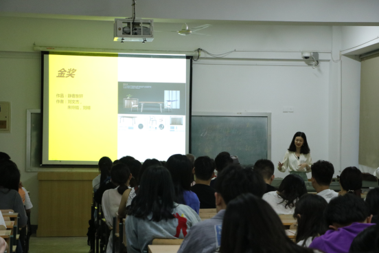 讲座开始,由负责人杨晶经理介绍了大赛征稿的具体要求、作品投递方式以及参赛的具体时间,让同学们了解知道这个比赛的具体情况。紧接着,讲座主讲人王周老师介绍了家具设计的具体方向以及参赛对象,面向社会广大家具设计爱好者。中国有着上下五千多年的历史文化底蕴,优秀传统文化一直滋养着中华儿女,所以此次大赛的宗旨是:穿越古今文化,引领中式时尚。大赛的主题是关于书房家具的设计。此外,王周老师特别重视绿色发展这个观念,在家具的设计方面,绿色和谐发展是设计不可忽视的一点。王周老师说,我们要重文化,重创新,要有“以小见大,四两拨千斤”的创新精神,同时,我们要向自然学习,要有新的尝试,有新的突破,要注重创新意识。