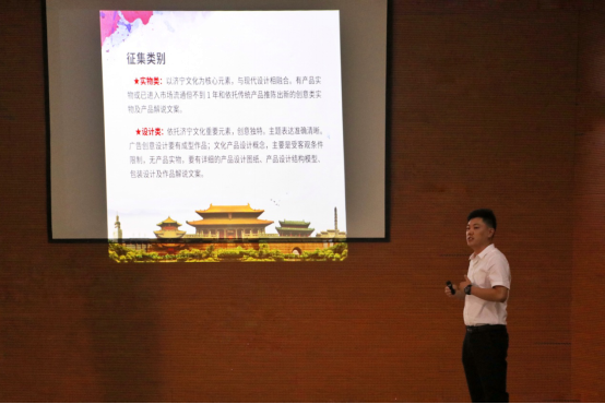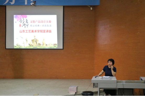 本次宣讲会分为五项环节。环节一由侯院长做开幕致辞,侯院长表示首先感谢济宁文化组委会为学校提供的大赛资源。同时介绍济宁丰厚的文化底蕴以及多元化的文化资源,当今国策对传统文化的大力宣扬,新时代创意开发对文化的大发展,结合当前教学系统和模式进行探讨合作与实践。环节二由高主任介绍济宁七大文化,高主任首先对济宁文化进行简单阐述,从济宁的儒家文化、运河文化、佛教文化、始祖文化、梁祝文化、红色文化七大文化中汲取资源,推动中华文化创造性、创新性,为人民提供精神上的指引。环节三由丁总介绍“创意济宁”文化产品设计大赛方案及实施细则,从征集类别、奖项设置、时间安排、参赛流程上进行了充分的讲解。环节四由仇总为大家梳理提出参赛的指导意见,并对大家步入将来设计领域中的人际关系给予分享。项目五为大会互动环节,同学们分别在仁义礼智信等不同层面进行提问互动,嘉宾分别在商业设计与创意设计的创新性与创造性给予回复。最后,大会总结由卢晓梦副院长陈述,大赛本着“文化育人”的宗旨,为同学们提供自我展示的平台,以促进文化创意的交流,形成互相启发的优秀学风,引导大家的创新精神和实践能力,提高同学们的综合素质。