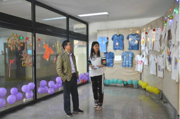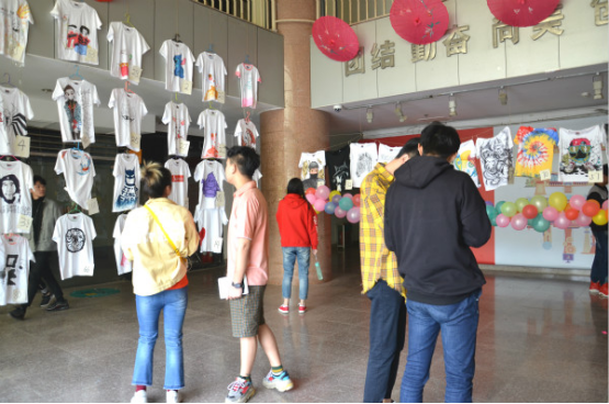 为了丰富校园生活,尽情展现学生风采,提高学生动手能力,让同学的青春活力以特别的方式在大家面前得以展示。由学生会自律部主办的酷绘T恤大赛于4月11日在教学楼一层大厅拉开帷幕。应用设计学院侯立平院长、来罗军书记、辅导员李江峰老师等多位老师与同学们一起参与评选。