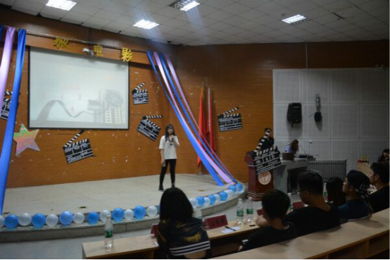 5月21日晚七时许,应用设计学院第三届微电影大赛于一楼阶梯教室正式开始。主席孙建文,副主席王晨光、宋飞、张嘉倩,秘书长徐玮,各部部长及16级全体同学共同出席本次活动。大赛分为往届优秀作品展播、放映入围作品、派送奖品、观众投票、颁发奖项等几部分。