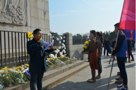 早上7点,学生会的同学们就在教学楼门口集合,排着整齐的队伍,举着应用设计学院的院旗,来到济南革命烈士陵园,同学们来到革命烈士纪念碑下,面向纪念碑进行了深沉的默哀,青山绿水常留生前浩气,苍松翠柏堪慰逝后英灵。同学们一同举起右手,在纪念碑前庄严宣誓,誓词在烈士纪念碑前久久地回荡……宣誓仪式上,同学们纷纷表示:要继承先烈们的遗志,高举社会主义爱国旗帜,沿着他们脚步路奋勇向前,让星星火炬代代相传,为祖国的富强和民族的强盛做出自己的贡献!
