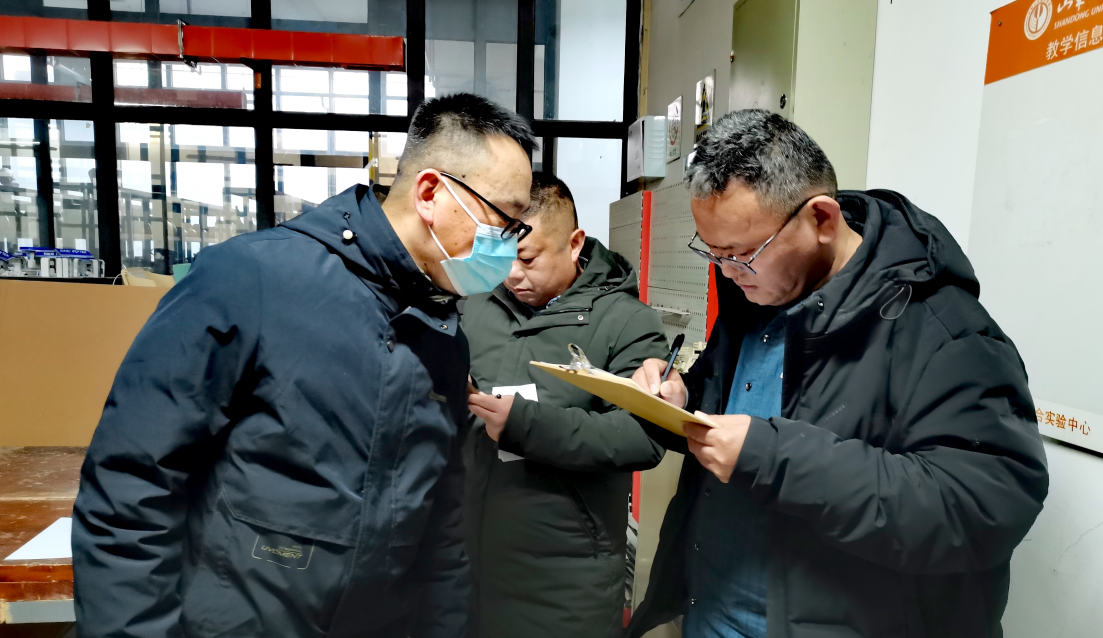 学校保卫处鲁顺杰、后勤管理处唐文举、实践教学中心办公室主任刘婧婧,实验教学室主任王海涛、崔志远、王荔娇、宋文禄参加检查。
