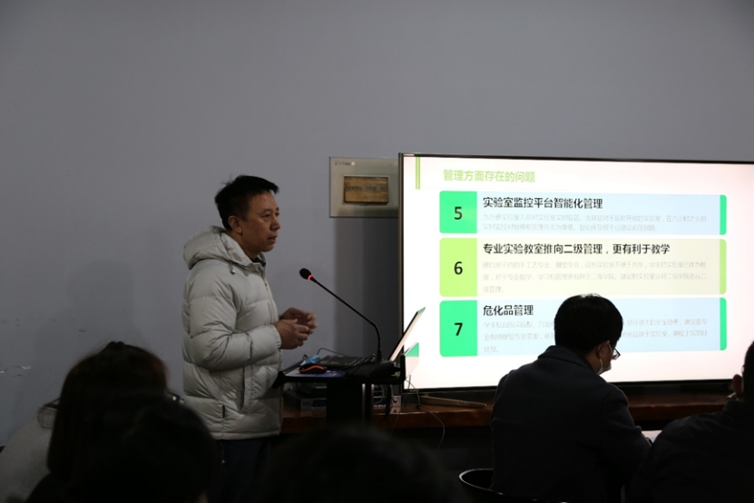 艺术与设计实践教学中心主任高振堂分别从前期工作梳理、近期工作、实验室管理存在的问题、实验室分类及管理、岗位分类及建设等五个方面进行汇报。针对实验室管理存在的问题,高振堂结合艺术与实践教学中心的发展前景、目标,提出实验室的分类及管理、岗位分类及规划的发展举措。