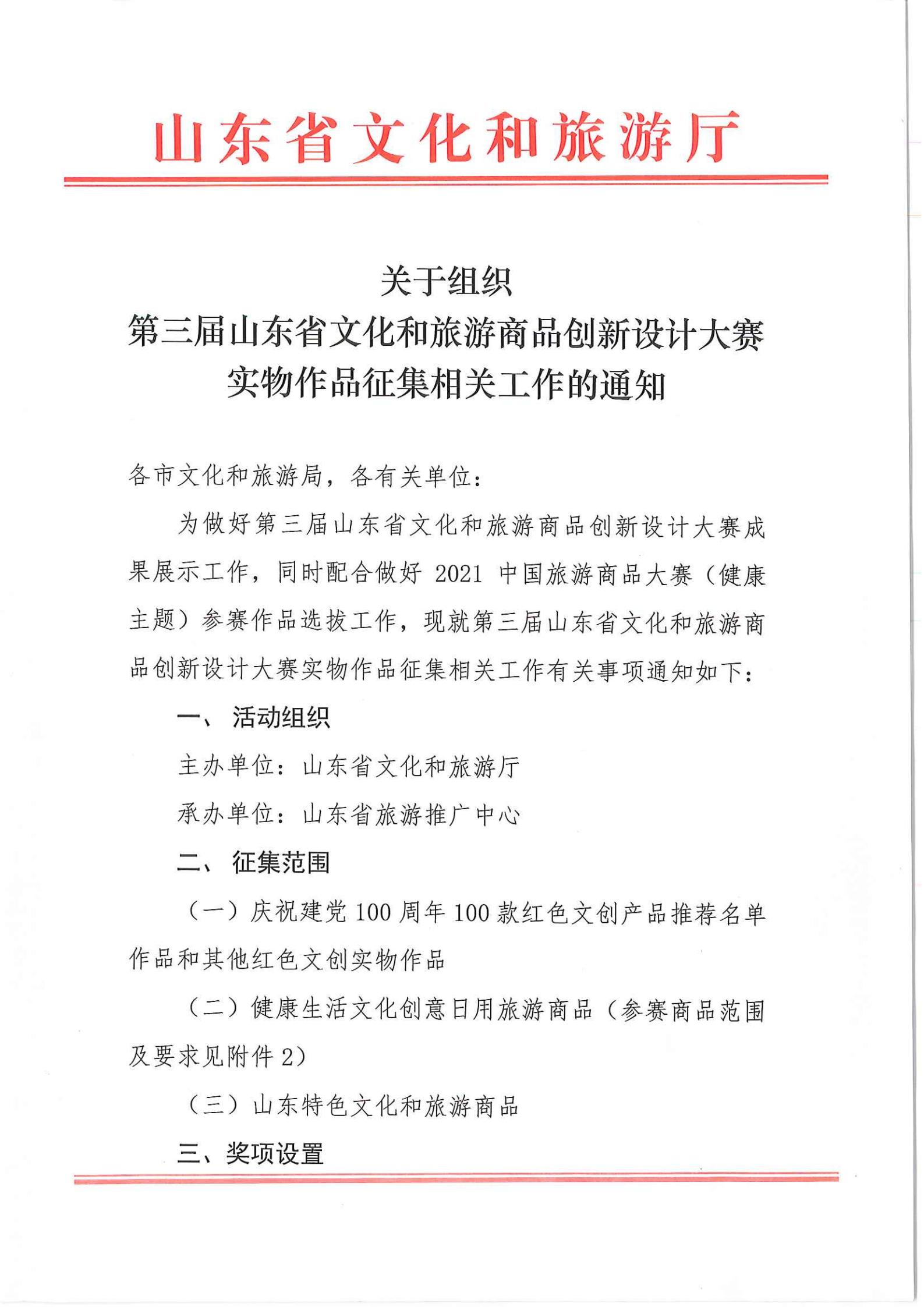 附件3关于组织第三届山东省文化和旅游商品创新设计大赛实物作品征集工作的通知.pdf