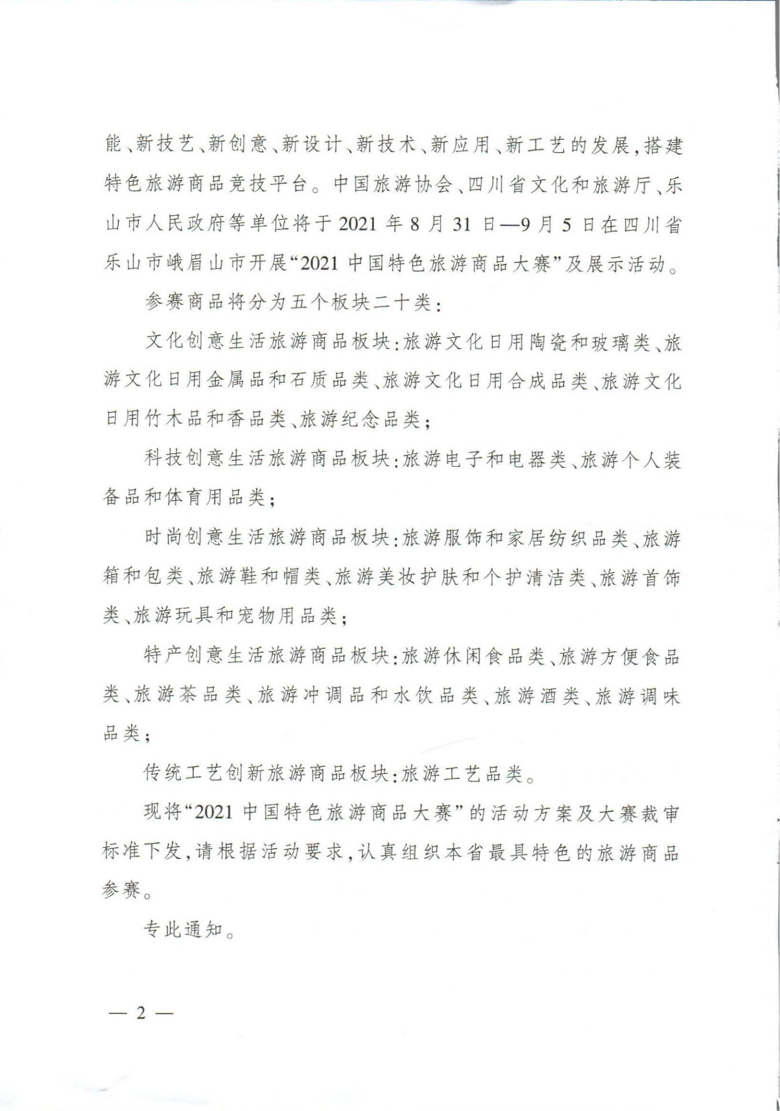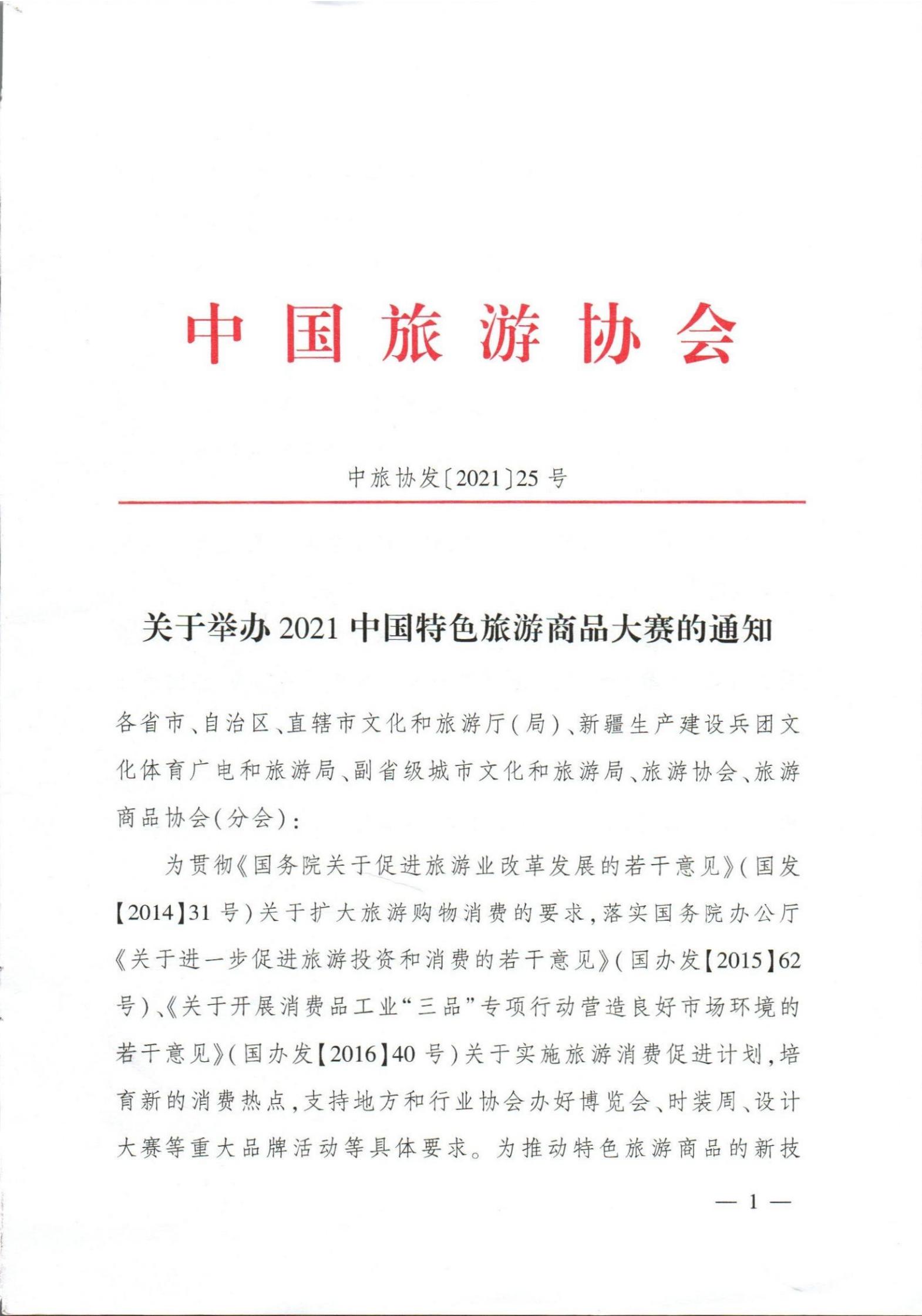 关于举办2021中国特色旅游商品大赛的通知