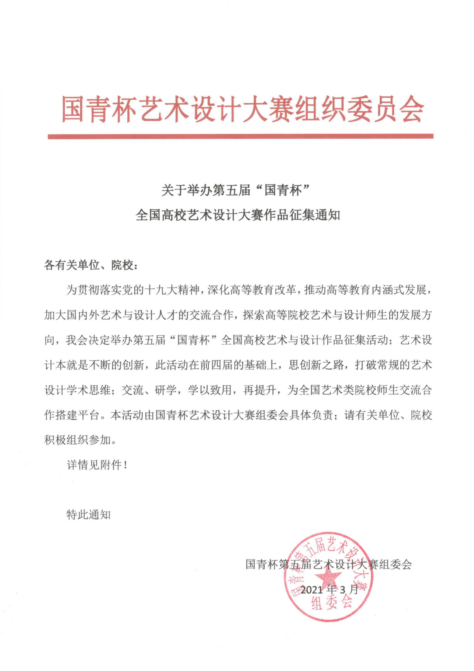 关于举办第五届“国青杯”全国高校艺术设计大赛作品征集通知