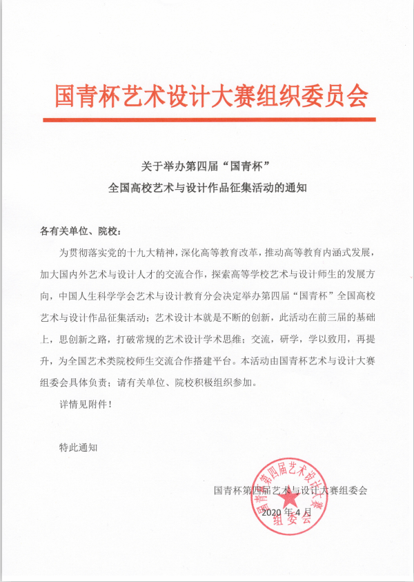 实践教学中心-关于举办第四届“国青杯”全国高校艺术与设计作品征集活动的通知