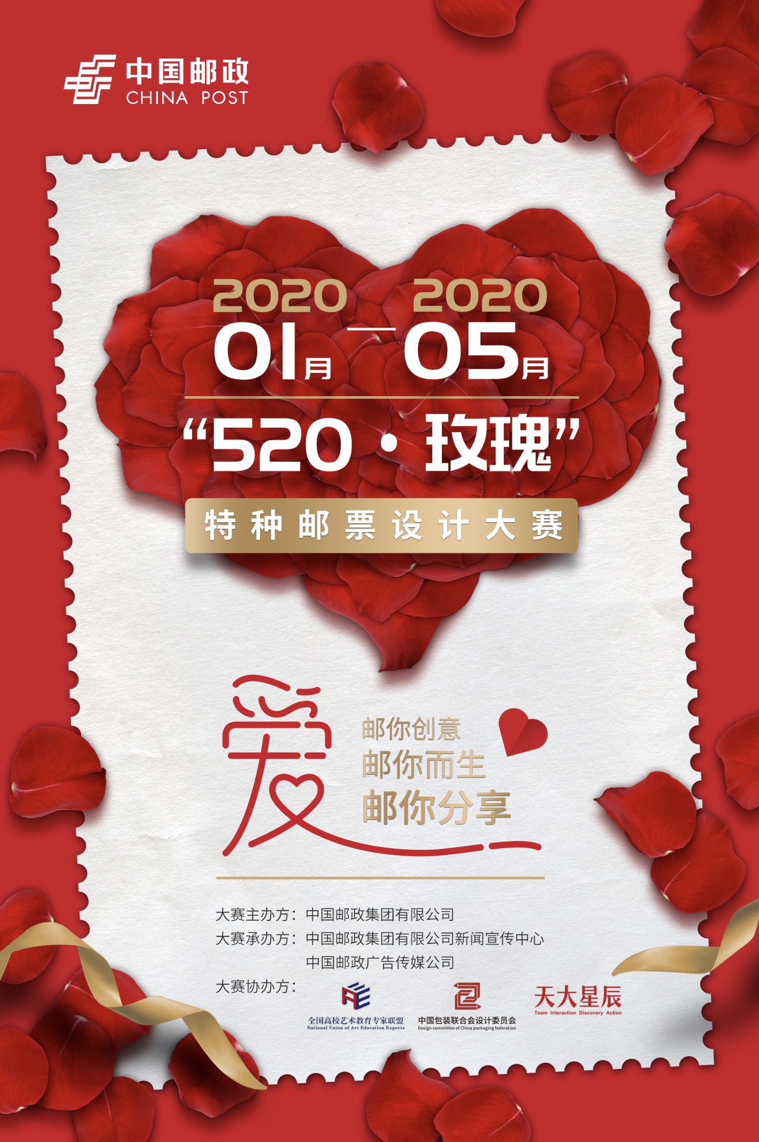 由中国邮政集团有限公司主办,中国包装联合会设计委员会协办的首届(我爱你)“520·玫瑰”特种邮票设计大赛征集活动于2020年元月正式启动。